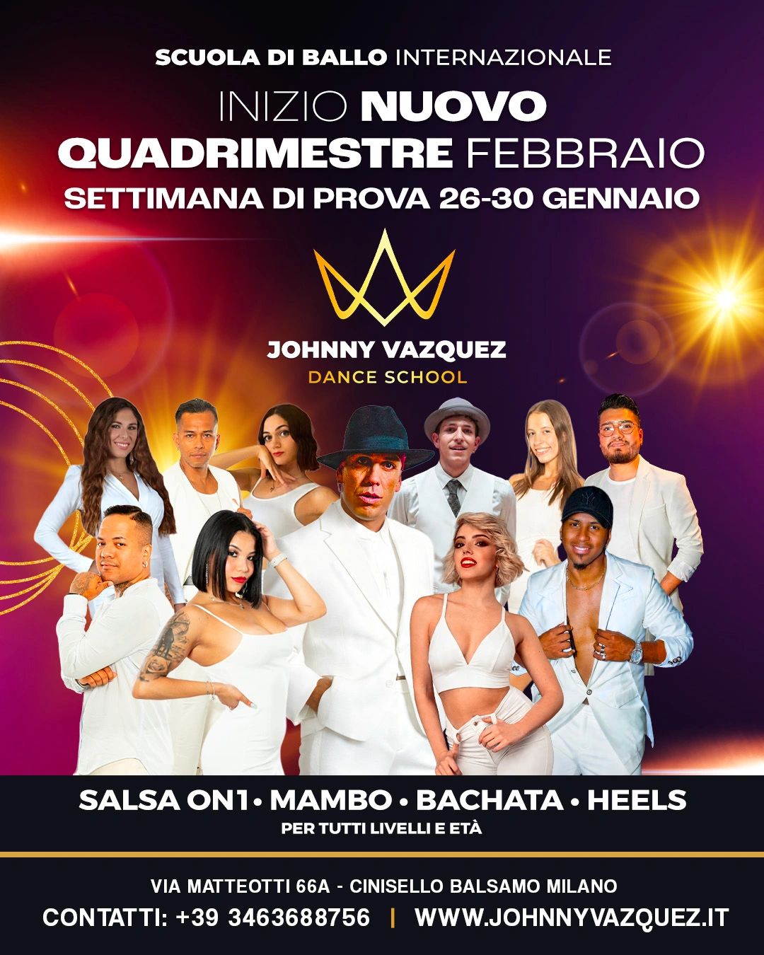 Fondata dal 2009, Johnny Vazquez Dance School fornisce la più alta qualità di istruzione di Ballo Latino Americano, con una competenza esperta in Salsa e Bachata. Costituito da un team di istruttori che sono tutti professionisti assoluti e istruttori di Ballo Caraibico attestati e certificati. scuola di ballo Cinisello Balsamo Milano